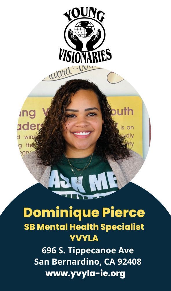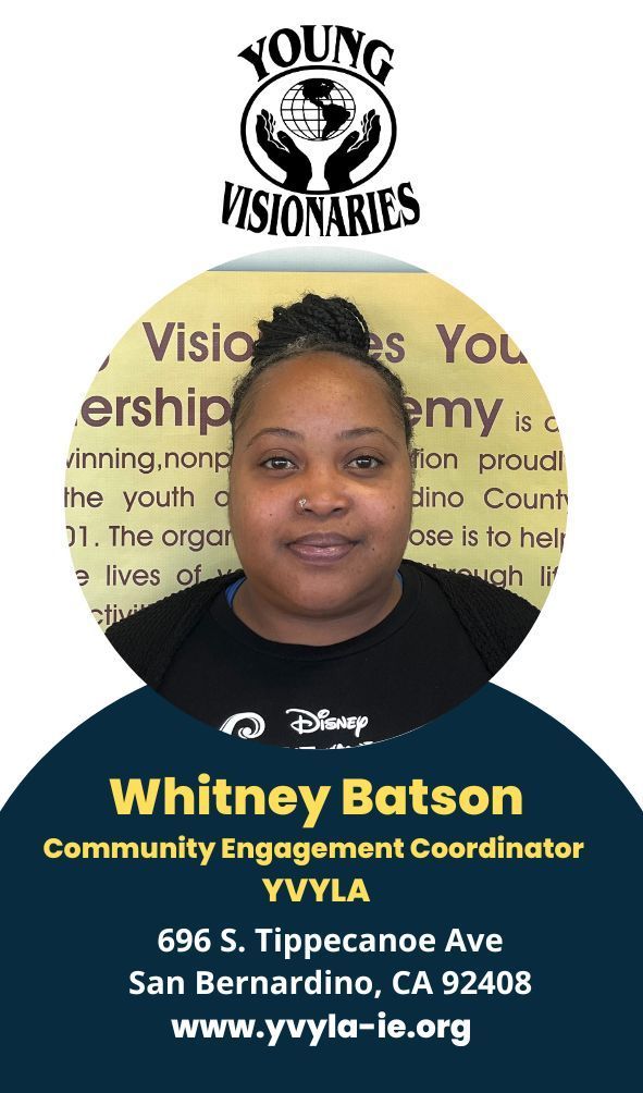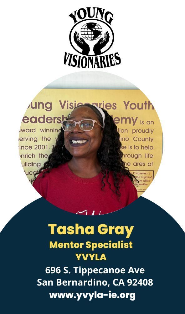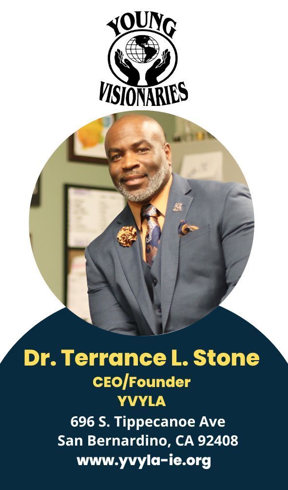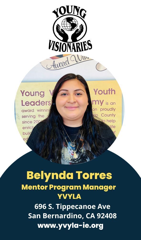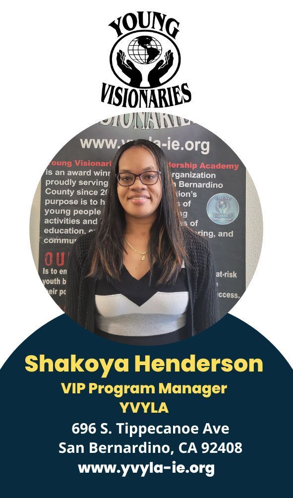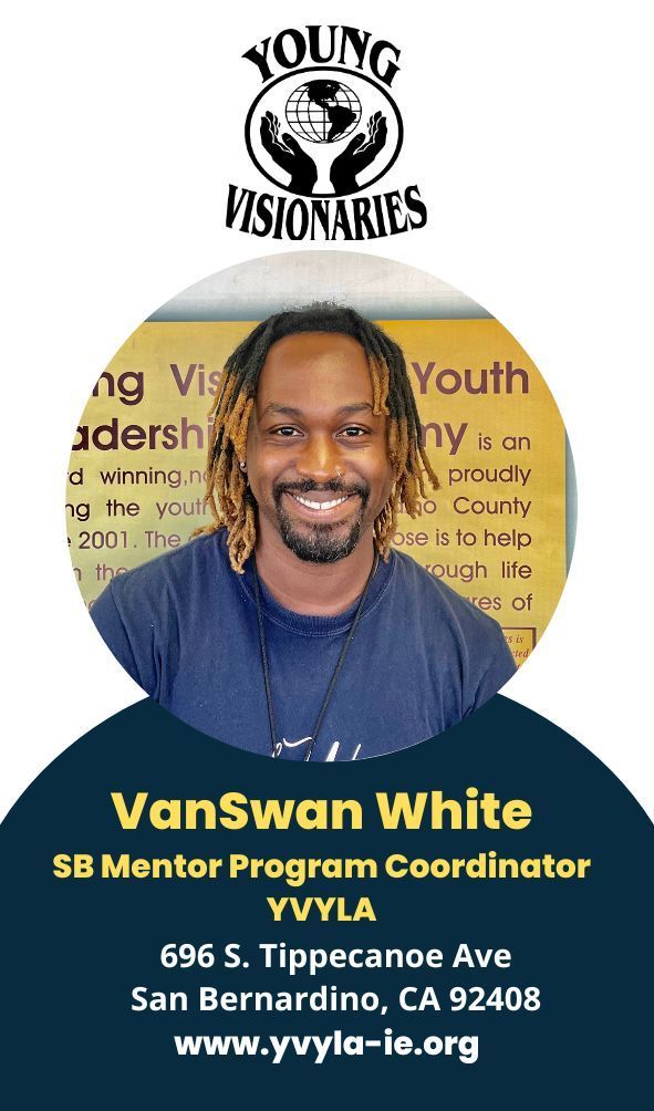 Young Visionaries Youth Leadership Academy’s (YVYLA) mission is to empower youth & young adults throughout San Bernardino County. Vision: Young Visionaries Youth Leadership Academy’s vision is to provide the tools necessary to succeed, deliver innovative programs, services, and resources, that help guide youth & young adults into making positive life choices while building a healthier community.